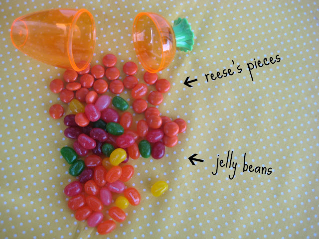 I put Reese's piece's in the top of the carrots so it was solid orange and