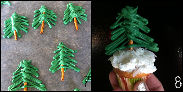 8. Place tree in a cupcake (I made coconut cupcakes to look like snow) and TA-DA!!